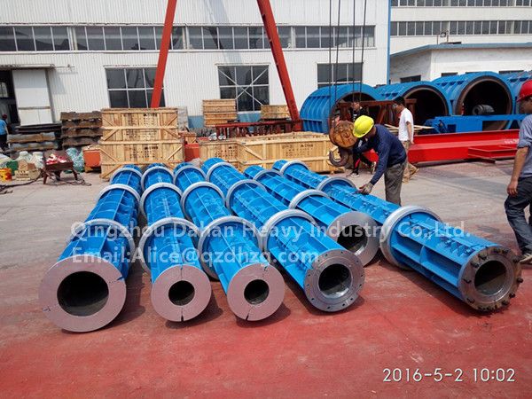 1 Adding the slurry into the steel mold for concrete pole, it is driven quickly and rotating at the same speed of the machine. Each component is separated and released under the centrifugal force. Usually the higher the slurry rotate speed, the better the slurry separating effect.